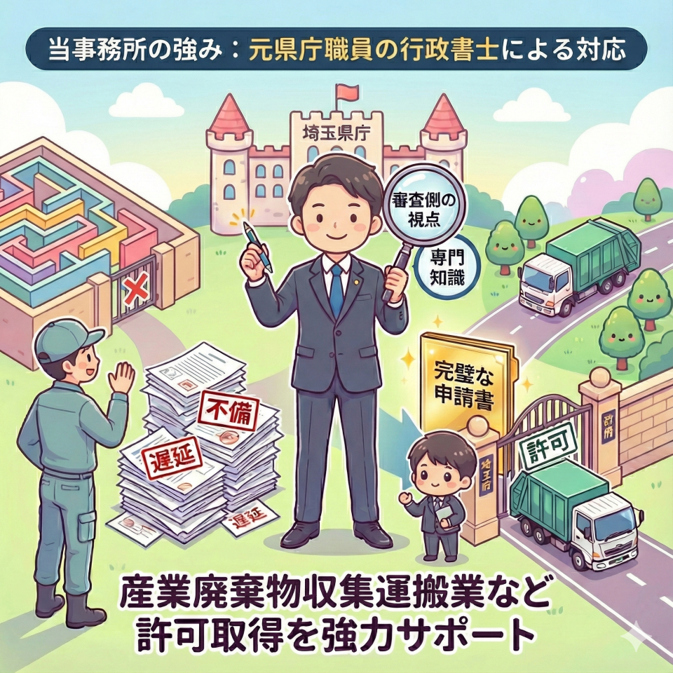 埼玉で産業廃棄物収集運搬業許可の申請手続きのサポートならお任せください!
