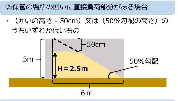 二 保管の場所の囲いに直接負荷部分がある場合(次号に掲げる場合を除く。) 前項第二号に規定する高さ