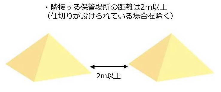 四 隣接する保管物の保管の単位の間隔は、二メートル以上とすること(当該保管の単位の間に火災による延焼を防ぐに足りる仕切りが設けられている場合を除く。)。